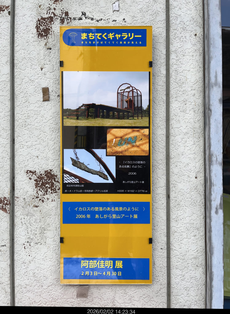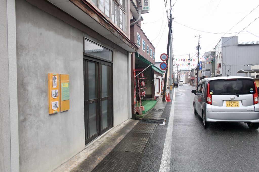 商店の壁であったり、空き家の、空き地にもいろんなカタチで作品の写真が、