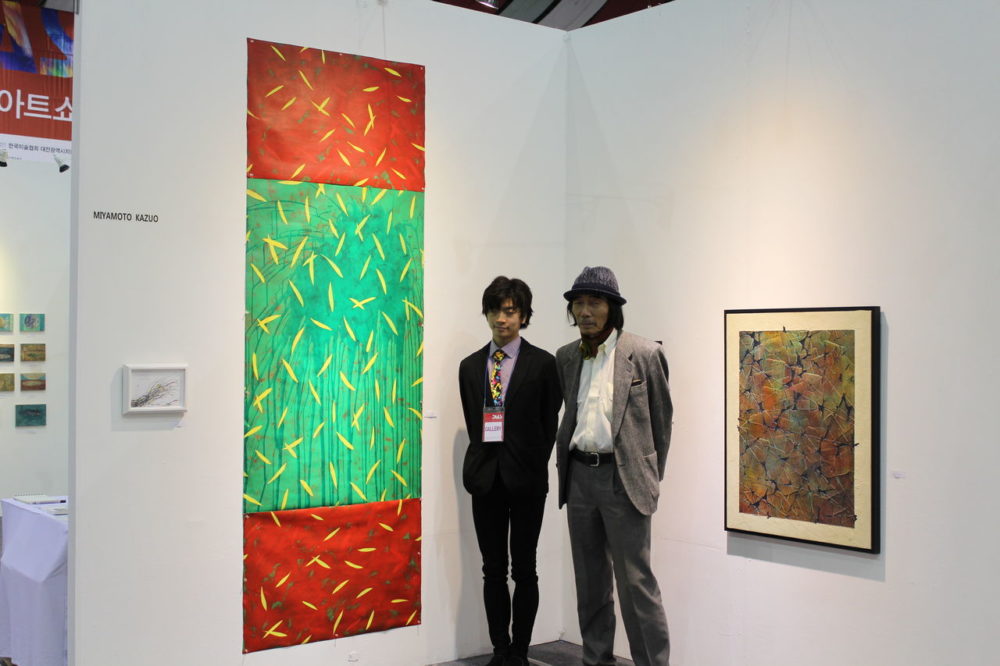 銀座 ギャラリーアーチストスペースで息子さんと作品の前で
