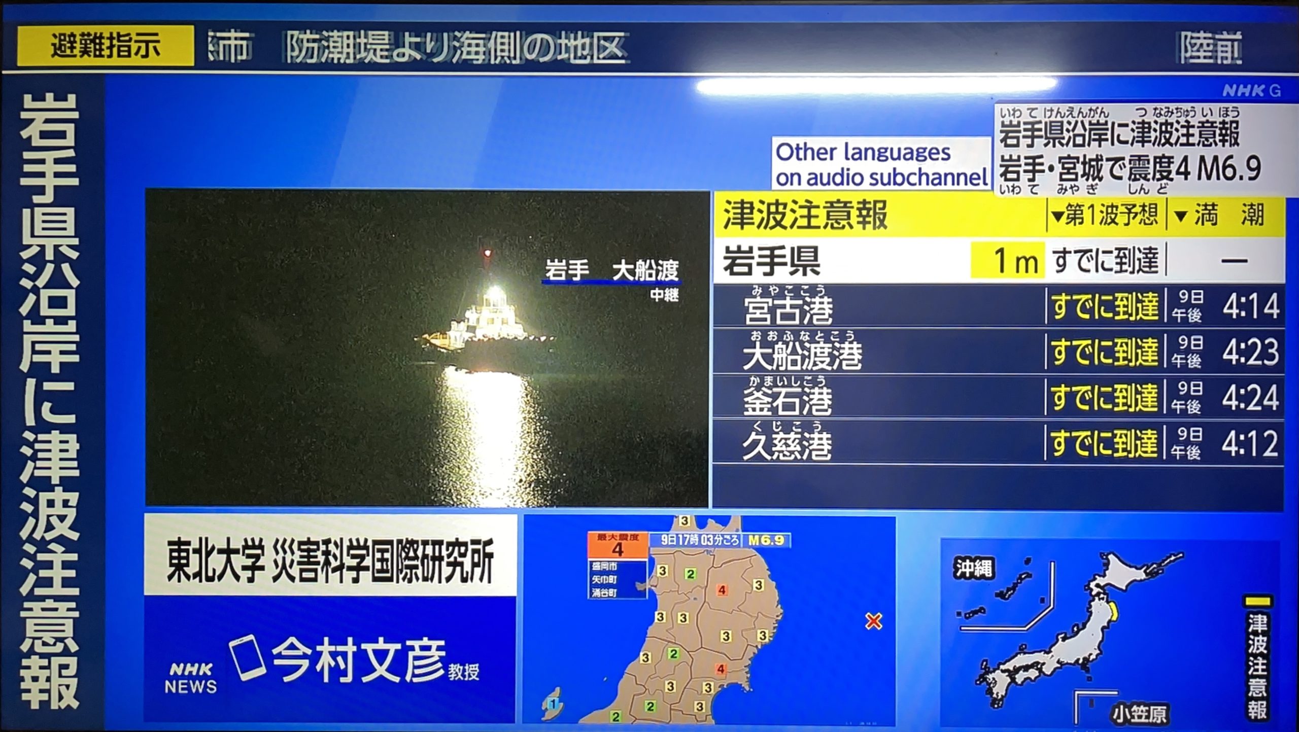 に注意とあり、沿岸から中継があり、気象庁からの警告などにぎやかだった。